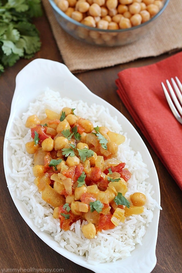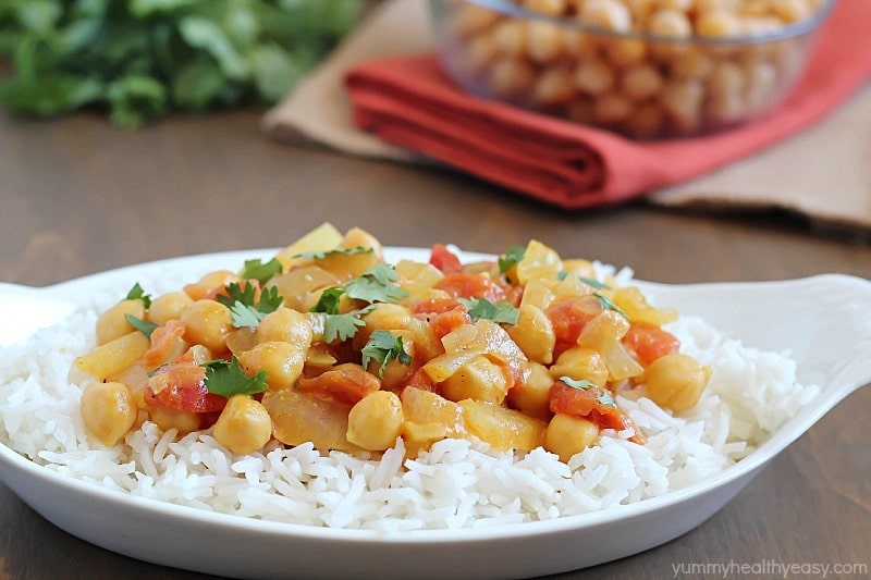 Coconut Chickpea Curry – chickpeas in a creamy curry sauce and served over rice. Quick, easy and absolutely delicious!
