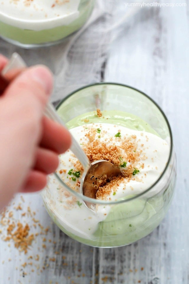 It’s just so easy. So is this Avocado Lime Parfait. Layer in cups or jars and serve. Dessert done. I’m obviously a tiny bit obsessed with avocados in desserts lately. I love the creaminess and richness avocado gives.