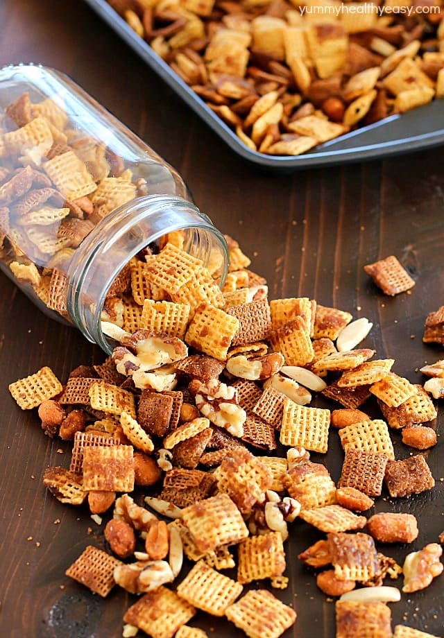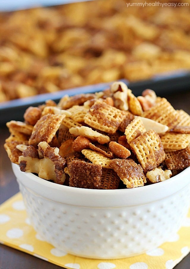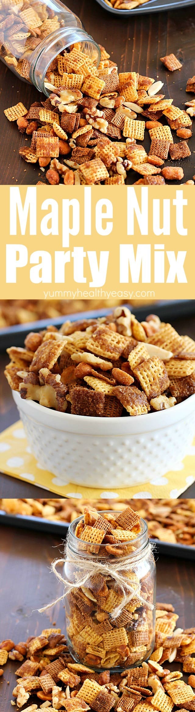 Maple Nut Party Mix is the easiest party mix you can make! This salty & sweet snack is perfect to bring to a party or to give out as gifts. Always a crowd-pleaser!