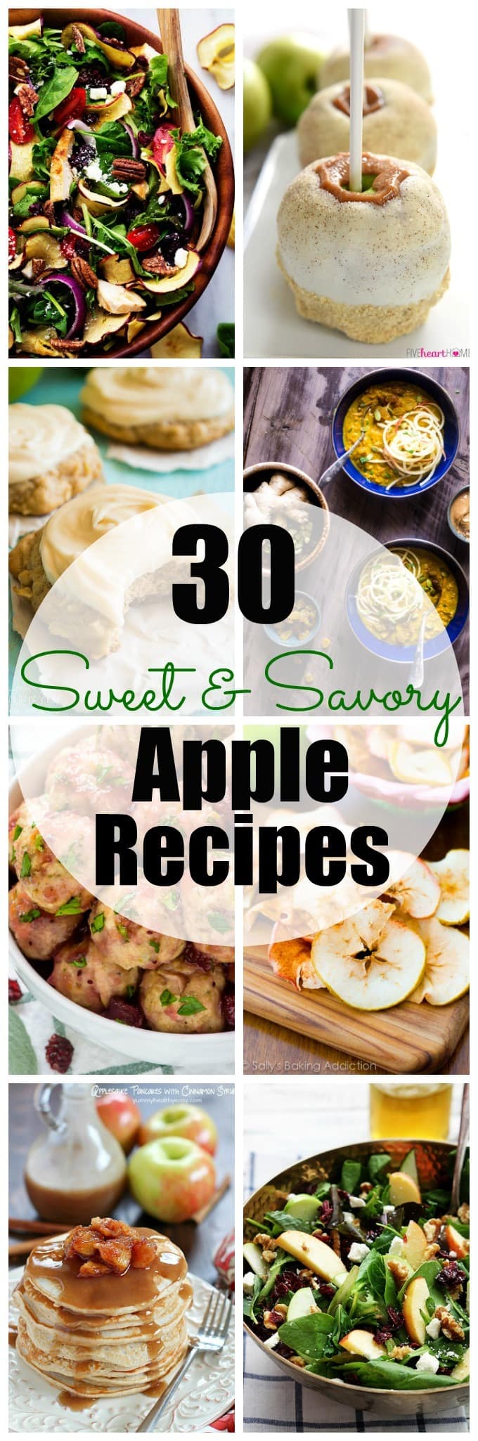 Enjoy apple season with these 30 Sweet & Savory Fall Apple Recipes! With breakfast, salads, soups, side dishes and desserts all made with fall’s best fruit – apples!