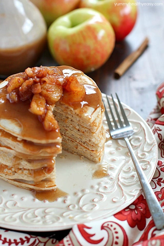 Start your morning with some Applesauce Pancakes with Cinnamon Syrup! They’re healthier, light, fluffy and full of fall flavors! (Thanks Truvia for sponsoring this post!)
