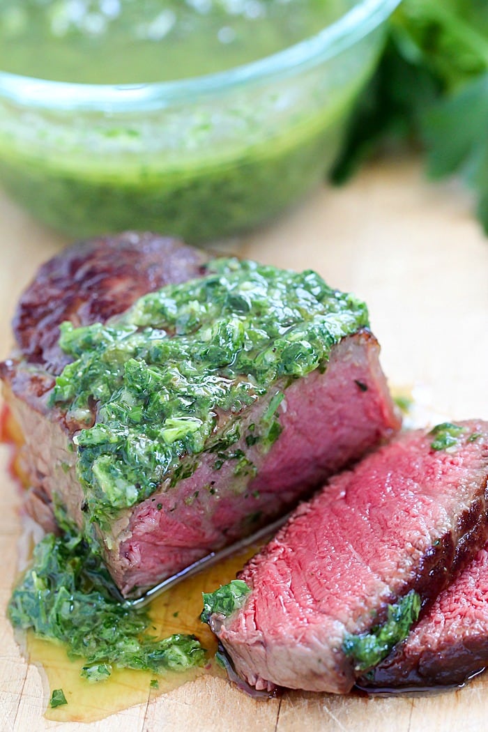 Now without further ado, here’s the recipe and instructions for the Beef Medallions with Chimichurri Sauce: