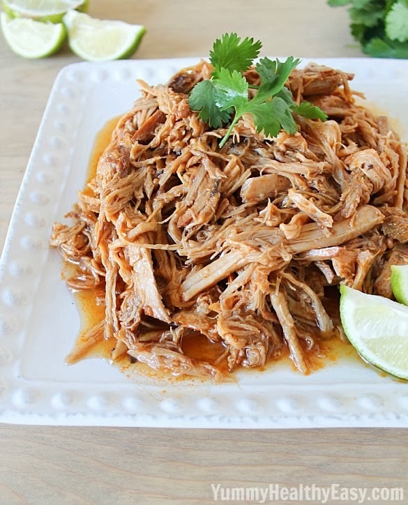 Even if you’ve never heard of the place, you have to give this pork a try. The sauce is tangy, sweet and a little spicy. The pork is so tender and flavorful. Such a great flavor combo and is the best on tacos, or salads, in burritos or enchiladas. You won’t regret giving it a try!