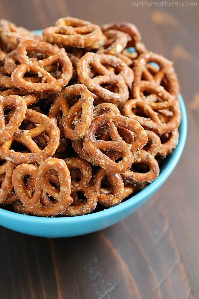 If you were to whip up a batch of these for a party, you would get rave reviews from your guests. Each small pretzel packs big taste and you won’t be able to stop noshing on them!