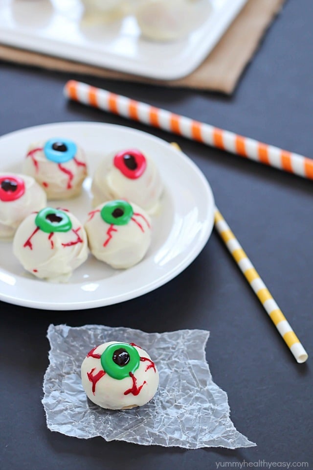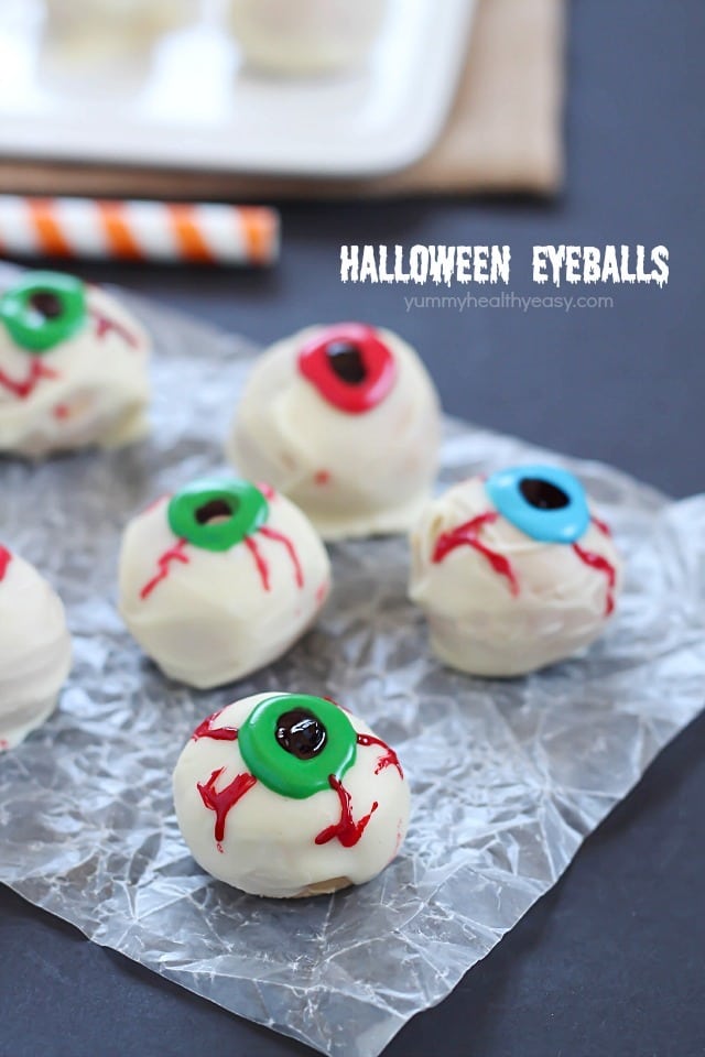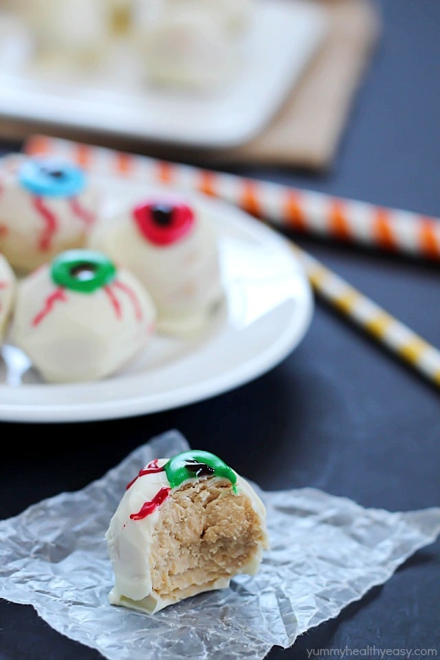 They obsessed over these fun peanut butter truffle Halloween eyeballs. Especially my 10-year old. Boys are weird! The grosser the better.