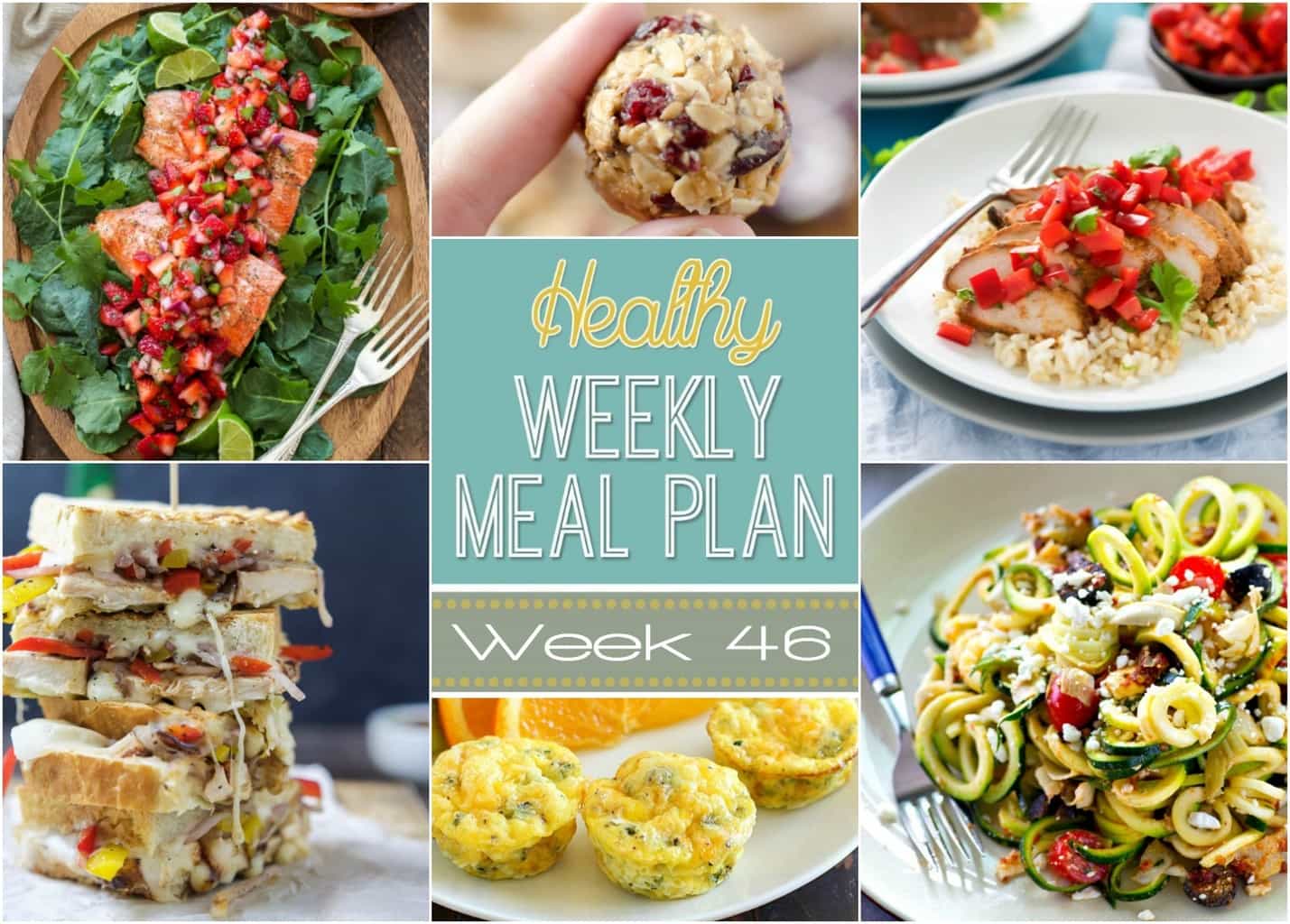 Healthy Weekly Meal Plan #46 is full of delicious dinner recipes for every day of the week plus a breakfast, lunch, side dish and snack recipe, too! Healthy eating will be a breeze for you this week!