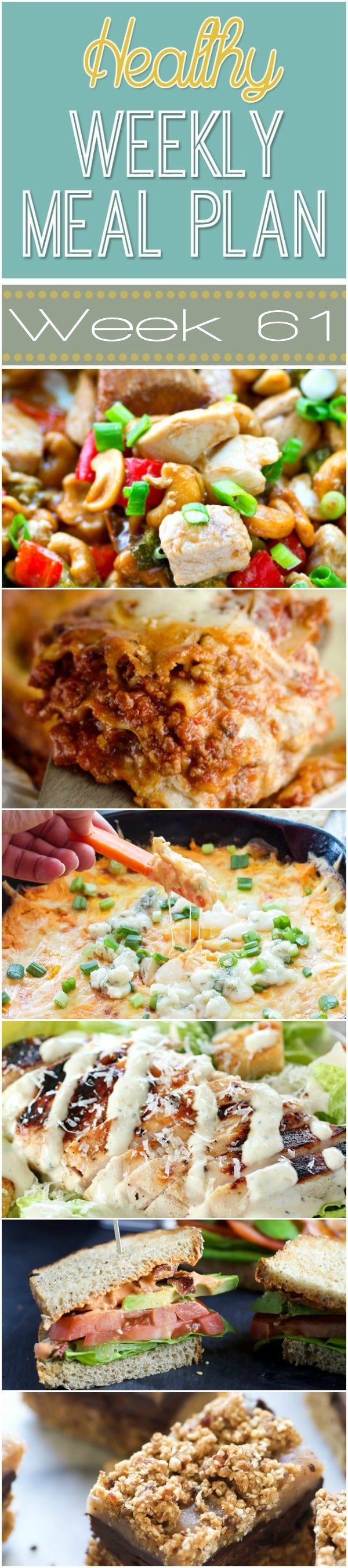 Healthy Weekly Meal Plan #61 is loaded with healthy dinner ideas! Plus a healthy breakfast, lunch, side dish and dessert that you will definitely not want to miss!