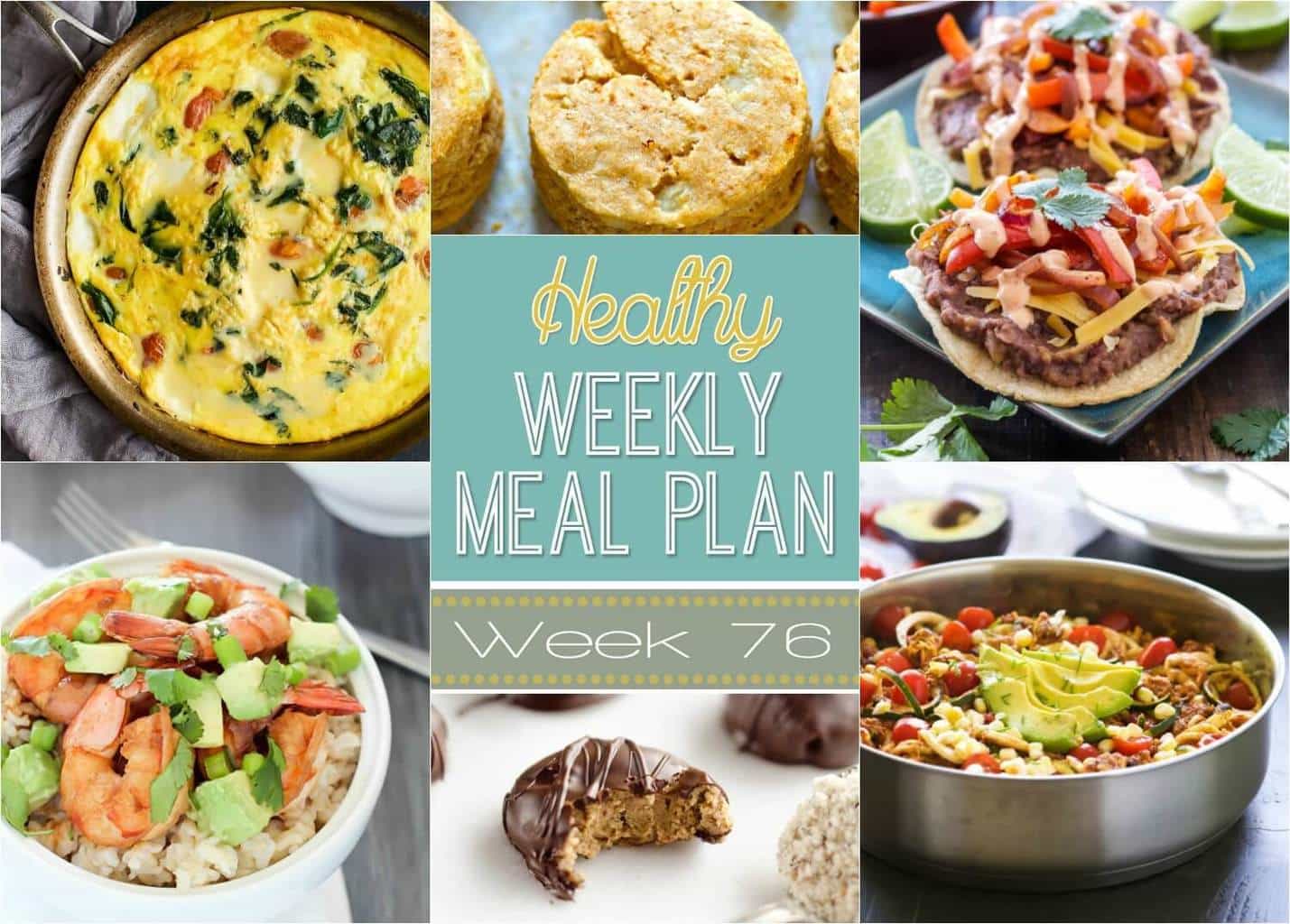 Celebrate the New Year with Healthy Weekly Meal Plan #76! Plan out your dinners for the week with these insanely delicious recipes! Also included are a healthy breakfast, lunch, snack, side dish and dessert recipe, too.