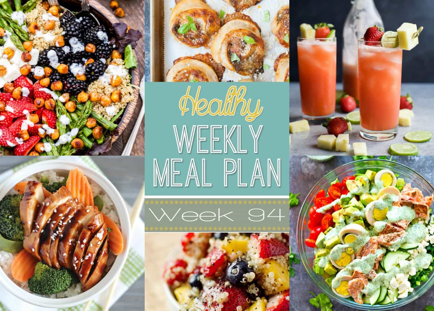 Healthy Weekly Meal Plan #94 will help you plan out your healthy dinner recipes for the whole week PLUS a healthy breakfast, lunch, side dish and dessert! 🙂