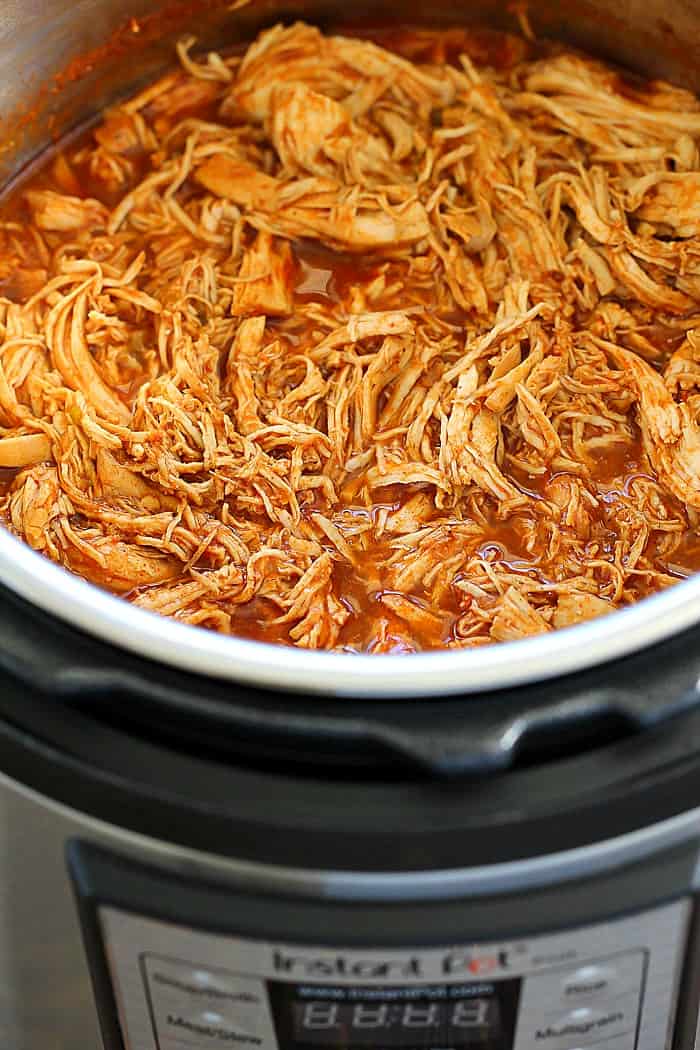 - Place it back into the Instant Pot with remaining liquid. Serve on tortillas, in salads, or alone. Enjoy!