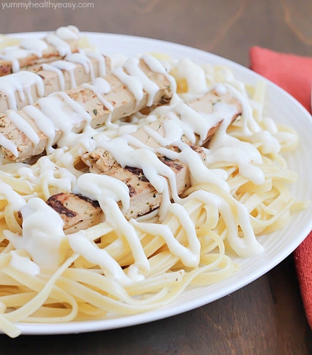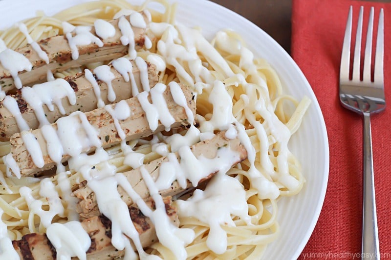 Throw in an unbelievable light homemade Alfredo sauce with some lower carb noodles and you got yourself a pretty awesome meal.