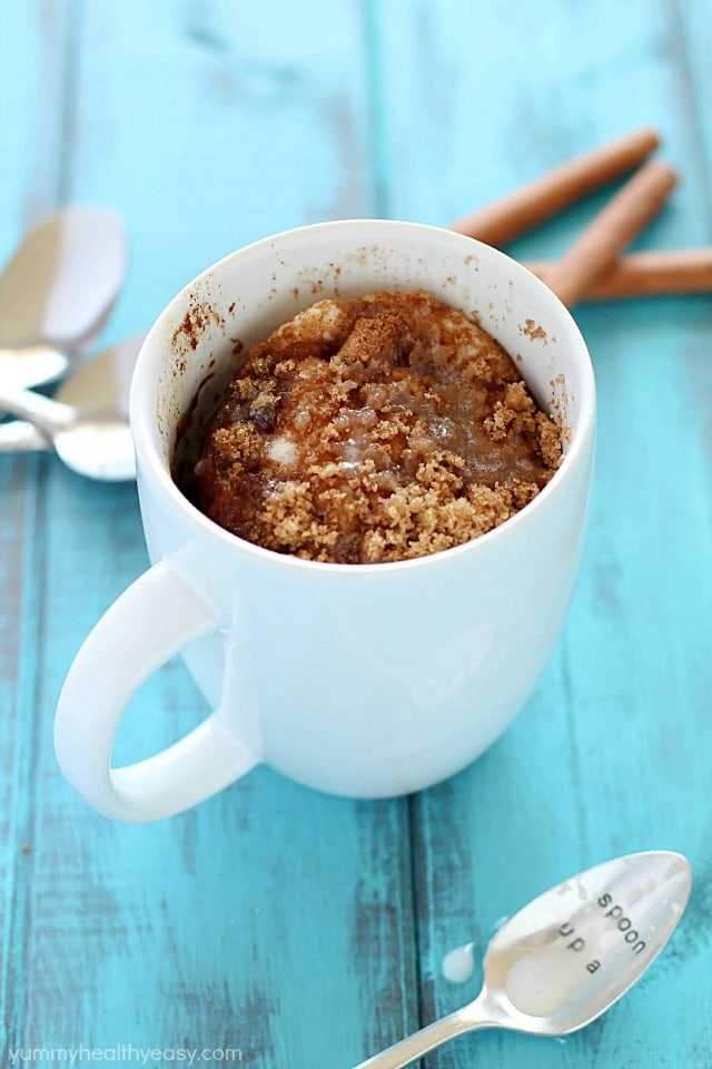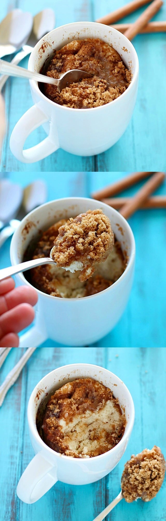 This Coffee Cake in a Mug is so easy to make and takes only a minute in the microwave. Quickest breakfast ever, and conveniently in a mug!
