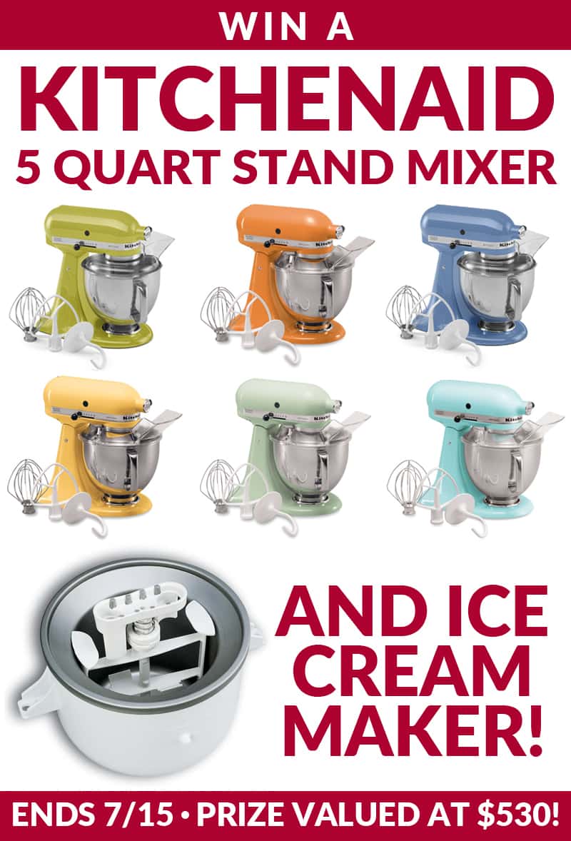 If you’re a fan of baking like me, then you’ll love the giveaway I have for you today! I’ve teamed up with 20 other bloggers to give away a KitchenAid Mixer with Ice Cream Maker! It’s a $530 value, you guys. I so want a new one and will be jealous to whoever wins this! So grab the recipe for my peanut butter oat balls and enter to win this awesome prize.