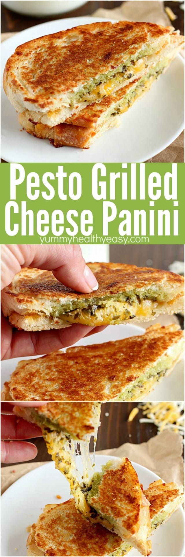 Pesto Grilled Cheese Panini is the easiest and tastiest grilled cheese sandwich pressed with two pans to make it a panini! You only need a few ingredients for this delicious sandwich full of flavor!