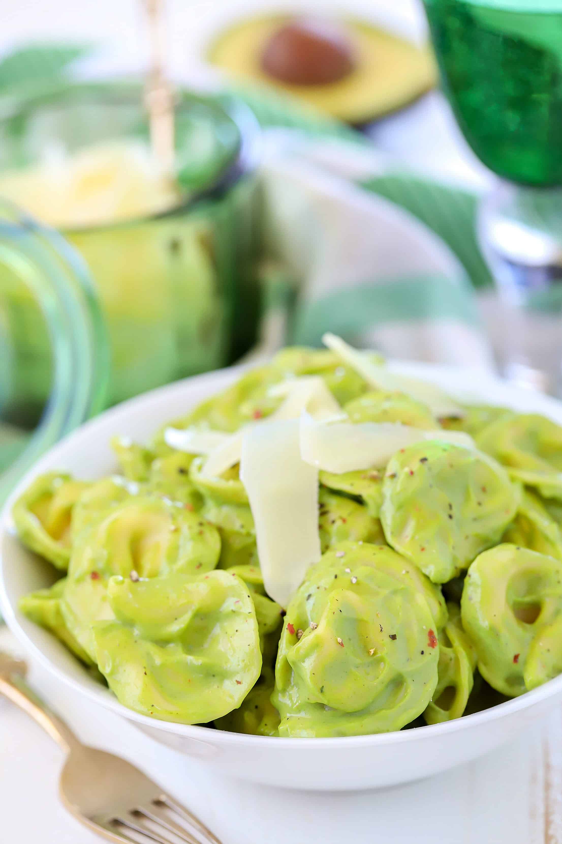 Tortellini is tossed in a creamy avocado pasta sauce for a crazy delicious and easy dinner any night of the week!