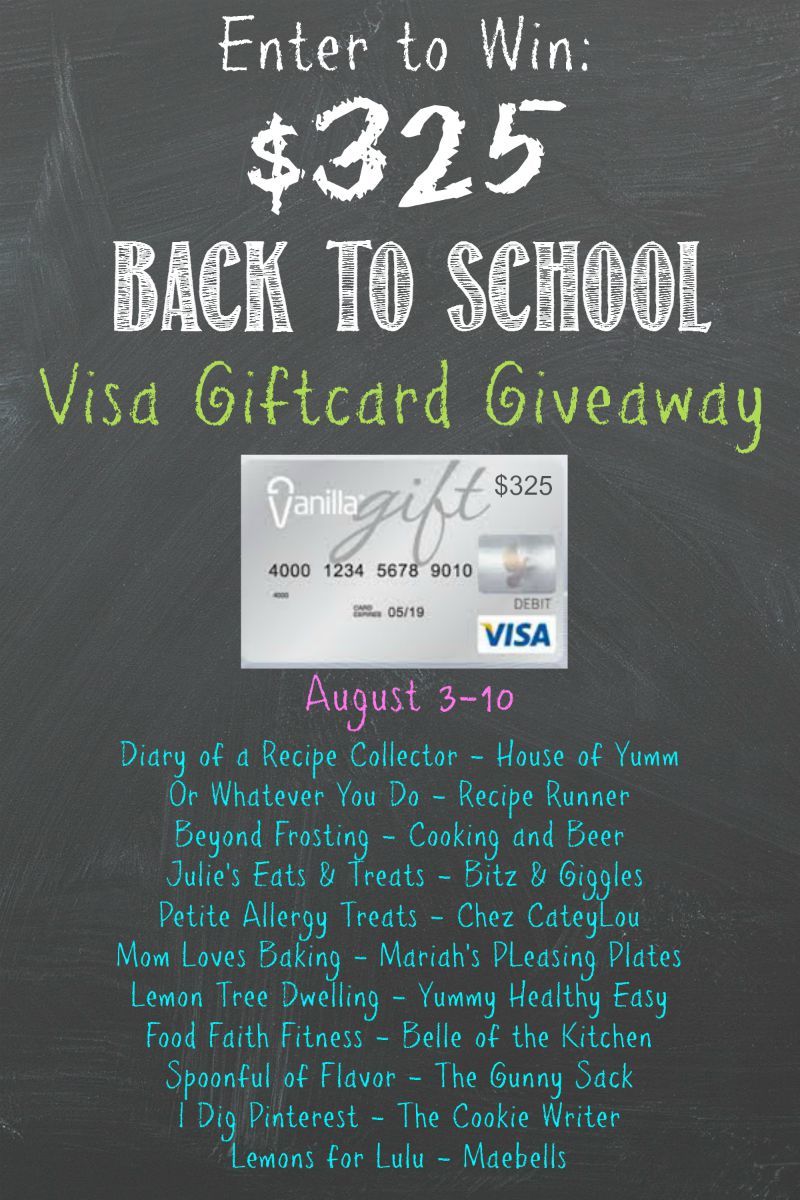 Now for the good part – a Visa Card giveaway!! $325 buckaroos to celebrate going back to school! I have several friends from Arizona, where I grew up, who’s kids have already gone back to school. We have another month here in Southern California. Going back to school is expensive! Let me help you out by giving away some cash to cover some of the necessities necessary for going back to school. Enter below to win!
