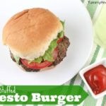 In a large bowl combine the ground beef, pesto and a sprinkle of salt and pepper. Be sure not to over-mix.
