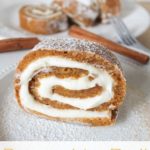 When the cake is cool, unroll and spread with filling. Re-roll (without the towel) and cut into slices. Top with a dollop of whipped cream or a sprinkling of powdered sugar. If not serving right away, wrap up in tin foil and store in refrigerator. This makes a great dessert that you can make ahead of time!