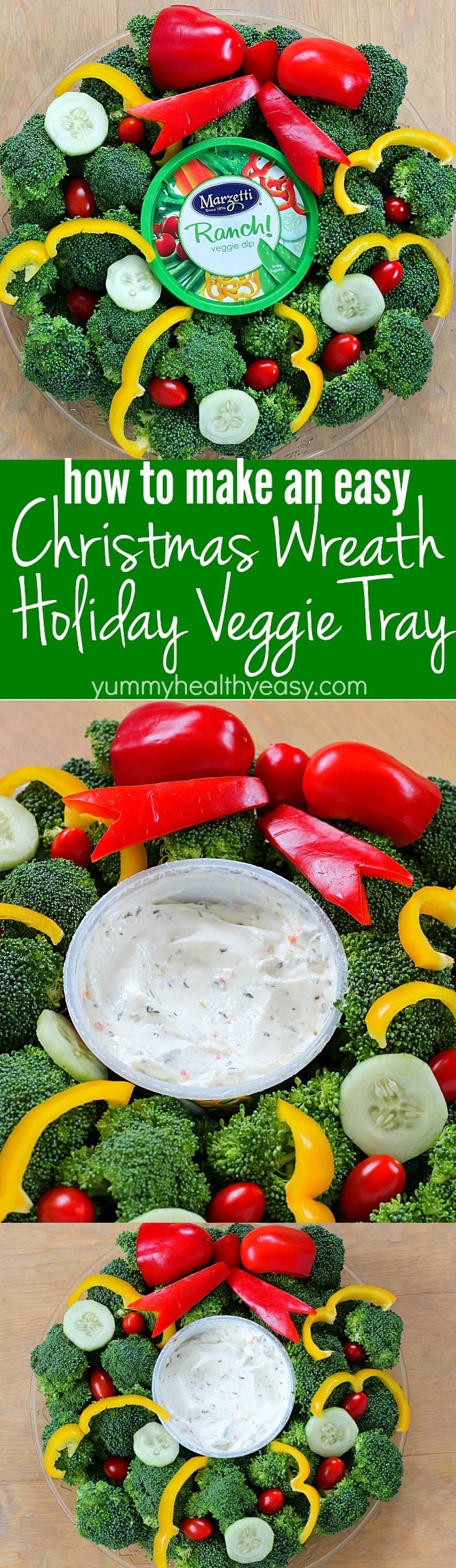 Making a Wreath Holiday Veggie Tray is easy and fun to do. To show you how to make it, I’ve created a quick video. Watch it below!